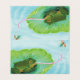 Frog catching insect. Frog hunting Bug. During its life, a frog will snap up thousands of insects with its sticky, extendable tongue. Green frog on lily pad trying to catch a flying beetle. Book illustration.