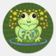 There are several designs in this section. One frog is sitting on a lilly pad with stars around the background. Another adorable group of frogs are sitting on the word FROG.