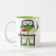 A green frog with safety goggles and a white lab coat does some experimenting in the lab on Frog in the Lab T-shirts, mugs, cards, stickers, tote bags, keychains, magnets, ornaments, and other science theme apparel and gifts.