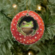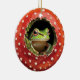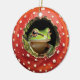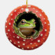 A charming green frog peeking out from inside a red toadstool creates a whimsical woodland holiday vibe. This cozy, nature-themed artwork blends Christmas charm with cottagecore fantasy, perfect for nature lovers, frog fans, and anyone who enjoys cute, magical forest designs during the holiday season. A warm and playful piece that stands out on any tree.