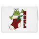Frog Noel holiday T-shirts, mugs, cards, stickers, tote bags, magnets, keychains, and other holiday clothing and gifts featuring a frog and text that reads "NOEL"!