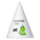 This is a funny and cute birthday party hat inspired by frogs. The template is ready to use add your kid's name, message, and age This hat is unique and perfect for a frog theme party. Customise yours now!