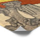 One of the most famous ukiyo-e prints of a frog is "Saru to Kaeru" (Monkey and Frog) by Katsushika Hokusai. This print shows a monkey and a frog playing together in a pond. The monkey is balancing on a lily pad, while the frog is swimming below. The print is full of humour and whimsy, and it captures the playful nature of both animals.