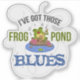 We've all been there. Singing the frog pond blues because a project just isn't turning out the way we hoped. Or an old project never was worn so we need to "rip it, rip it" to try something different. The frog pond isn't the most fun place to be, thus the blues. Design is a singing frog with a project in the process of being frogged. Matching products available.