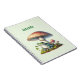 Spiral notebook with a cool illustration. Featuring a green frog sitting on a mound of grass. A big red mushroom sheltering him from the elements. A couple of little toadstools nearby.