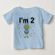 An adorable 2nd birthday design on 2nd birthday T-shirts, cards, stickers, magnets, tote bags, and more featuring a green frog holding a blue frosted cupcake and text that reads "I'm 2".