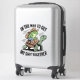 The stick looks amazing. Unfortunately, it would not stick on our suitcase as it was textured. When we found a non-textured (smooth) suitcase, the sticker stuck and looks great. The printing looked awesome.