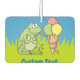 Smiling frog steals an ice-cream cone with his tongue. Custom text on both sides.