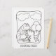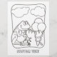 Colouring book page. Smiling frog steals an ice-cream cone with his tongue. Custom text.