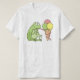 Smiling frog steals an ice-cream cone with his tongue. Customise it with your text.