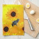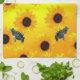 "Frogs and Sunflowers: A Playful Nature Pattern" Tea Towel