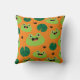 Cute frogs and lily pads throw pillow/cushion. Orange backgrounds, green frogs and lily pads. Great for any room, especially kids!