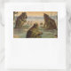 Frogs Lily Pads Moon Illustration Rectangular Sticker