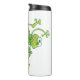 Green frogs having fun waving, making crazy eyes and sticking their tongues out while creating a playful rotating pattern design, a choreography of entangled frogs