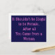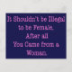 In pink text it reads: "It shouldn't be illegal to be female, after all you came from a woman."
