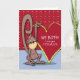 This cute monkey is holding a heart of love from both of you for that someone special. Background is red with dots and stripes. The heart is taller than the monkey as he is showing how much!