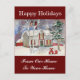 Celebrate the festive season with a “From Our Home To Your Home” happy holidays postcard. The charming Watercolor painting expresses the rustic joys of a country farmhouse in a winter scene,. The whimsical woodland animals add an engaging style in the cute red fox, snowy owl and red cardinals. The cheerful snowman on the back invites you to personalise your special holiday message.