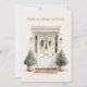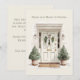 Beautiful and elegant holiday card with a lovely front door with pine trees and a holiday wreath with a simple bow.