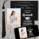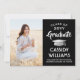 Share the joy of a high school or college graduation with these custom photo black, white and silver announcements. (IMAGE PLACEMENT TIP: An easy way to centre a picture exactly how you want is to crop it before uploading to the Zazzle website.) This template is simple to customise with any wording of your choice, such as party invitation details, parents' names, special honours, degree title, favourite inspirational quote, graduate's contact info, future education plans, or new job position. If there's any text not wanted simply delete it. Design features a black background, faux silver foil mortar board cap, handwritten style script calligraphy, modern minimalist typography, and one photo of your choice, such as a senior picture or image from the commencement ceremony. Please note that silver is printed colour, not metallic foil. These elegant graduation announcement cards are a trendy and chic way to share your special day celebration with family and friends. Congratulations to the graduate!