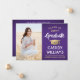 Share the joy of a high school or college graduation with these custom photo purple, gold and white announcements. (IMAGE PLACEMENT TIP: An easy way to centre a picture exactly how you want is to crop it before uploading to the Zazzle website.) This template is simple to customise with any wording of your choice, such as party invitation details, parents' names, special honours, degree title, favourite inspirational quote, graduate's contact info, future education plans, or new job position. If there's any text not wanted simply delete it. Design features a purple ombre background, faux gold foil mortar board cap, handwritten style script calligraphy, modern minimalist typography, and one photo of your choice, such as a senior picture or image from the commencement ceremony. Please note that gold is printed colour, not metallic foil. These elegant graduation announcement cards are a trendy and chic way to share your special day celebration with family and friends. Congratulations to the graduate!