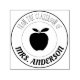 This self inking stamp is designed for any teacher to use for her classroom books and supplies. It offers a silhouette graphic of an apple and custom text that allows for the teacher's name.