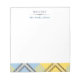 Chic, modern and trendy customisable notepad features "From The Desk Of " ,"personalised name" at the top and yellow-blue plaid tartan at the bottom.
