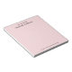 from the desk of appears in an elegant script above the non-script text for your name. Additional text for your phone number, email, or another custom message is near the bottom. The text is black and can be edited or deleted. The notepad is pale pink.