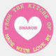 From the kitchen of made with love round stickers. Personalised party favour tags with custom message and name. Elegant colourful pink design with love heart symbol and fun typography. Add your own name and / or family surname. Cute round DIY labels or seals for home made cooking and baking products like cookies, sweets, cake, cupcakes, Christmas Holiday treats etc.