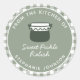 Homemade Food Gift Label From the Kitchen of Sage Green Classic Round Sticker Food or Jar Lid Label... A sage and white buffalo plaid check pattern borders your homemade food product text on these round sticker labels for gifting your homemade jams, preserves, and relishes. In the centre of the label is a dark green jam jar graphic with white "from the kitchen of" text above the product name and the cook's name. You can revise all text to suit your own needs on the handy personalisation template.
