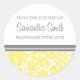 Custom name from the kitchen of labels in bright lemon yellow, grey and white elegant vintage floral damask pattern. Perfect for labelling baked goods, canned preserves, and many other goodies from the kitchen, the perfect treat for the baker in your life.