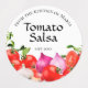 You can use these to label your homemade tomato salsa. Fits perfectly on canning lids or on canning jars. The design shows fresh tomatoes with garlic, onions, and oregano. These round stickers can be used for homemade preserves, gifts, seal packages, and a whole lot more.
