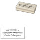This rubber stamp features a decorative element with modern and script typography that is personalised.