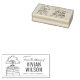 Simple and modern wooden bookplate stamp design, perfect for whether the book is from a personal library, a school library, a teacher's library, or a public library! On the left hand-hand side, the stamp features a minimalist line drawing of a stack of books with a tree at the top. The line continues along the bottom of the stamp, it can be lined up with the bottom of a page or set in the middle for a chic finish. Next to the illustration, above the line, the text appears. It reads "From the library of" with a custom name and "Read it. Love it. Return it." or the message of your choice at the bottom. For more advanced changes, use Zazzle's Design Tool. For example, you can change "from the library of" to "this book belongs to" or "ex libris", you can change fonts or edit placement, and you can make the text bigger to suit your needs. This is the wooden rubber stamp - choose the handle and ink pad options according to your preference! A self-inking version of this stamp is available in my store.