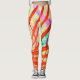 The original, abstract pattern of stripes on these Leggings was created from an original photograph by ZoeSPEAK of palm fronds bending in the breeze. In this abstraction, the fronds are in shades of vermilion red, and the soft focus background, which was pine trees, has become yellow with shapes of green and lavender.