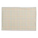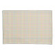 "Front and back view of a rectangular textile featuring a small multicolored checkered pattern with red, green, blue, and orange lines on a light background."