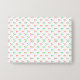 Front and back view of a white envelope with a pattern of small, colorful, diagonal stripes. The front is plain, while the back features a black lining.
