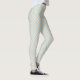 Front and back view of leggings with a blue, white, and orange diamond pattern. The mood is casual and stylish, paired with black sneakers.