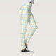 Front and back views of plaid leggings with yellow, blue, and white patterns. Paired with black sneakers, the style is casual and vibrant.
