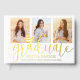Add an elegant personalised touch to college or high school graduation party decorations with a custom 4 photo gold foil guest book. The pictures and all wording on this template are simple to customise, including congratulations message from parents on back. The interior pages can be lined or blank for use as a scrapbook, notebook or journal. The front, back and spine are embossed with real metallic foil. The white and gold design features chic trendy script calligraphy, stylish modern minimalist typography, and four pictures of your choice, such as senior pictures or images from the commencement ceremony. This unique guest book makes an elegant keepsake graduation gift idea. Congratulations to the graduate!