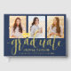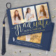 Add an elegant personalised touch to college or high school graduation party decorations with a custom 4 photo navy blue and gold foil guest book. The pictures and all wording on this template are simple to customise, including congratulations message from parents on back. The interior pages can be lined or blank for use as a scrapbook, notebook or journal. The front, back and spine are embossed with real metallic foil. The navy blue and gold design features chic trendy script calligraphy, stylish modern minimalist typography, and four pictures of your choice, such as senior pictures or images from the commencement ceremony. This unique guest book makes an elegant keepsake graduation gift idea. Congratulations to the graduate!