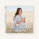 Add an elegant personalised touch to college or high school graduation party decorations with a custom 2 photo spiral guest book. The pictures and all wording on this template are simple to customise, including congratulations message from parents on back. The interior pages can be lined or blank for use as a scrapbook, notebook or journal. The design features chic white handwritten style script calligraphy, stylish modern minimalist typography, and two pictures of your choice, such as senior pictures or images from the commencement ceremony. This unique guest book makes an elegant keepsake graduation gift idea. Congratulations to the graduate!