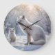 "Frosted Bonds: The Arctic Fox and Her Cub" Large Clock