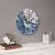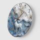 A beautifully crafted clock showcases an elegant white reindeer with majestic antlers, set against a swirl of icy blue and white textures. The intricate details and shimmering accents evoke a serene winter ambiance, perfect for the holiday spirit.