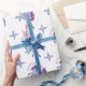 Frosty blue dancing unicorn wrapping paper