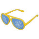 This novelty Christmas sunglasses have large frosted light blue snowflakes set against a darker blue background. You can choose the frame colour of your choosing. This would be a fun addition to a Christmas holiday party, a Christmas party photo booth, and a great ugly sweater accessory.