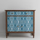 Elegant tissue paper design featuring a seamless pattern made of geometric shapes in different shades of blue.