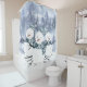 This holiday shower curtain features a watercolor design snowman trio on a soft blue watercolor wash forest background. Add your family's name to personalise it. Makes a great holiday gift. Created by Simply Farmhouse Press.