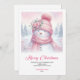 Frosty pink snowman kids greeting card editable