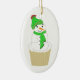 A cute snowman cupcake with white frosting and green hat and scarf. A cute Christmas baking themed ornament.