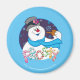 Check out Frosty wearing his iconic top hat and holding his pipe, featuring his name written with colourful candy cane letters.
